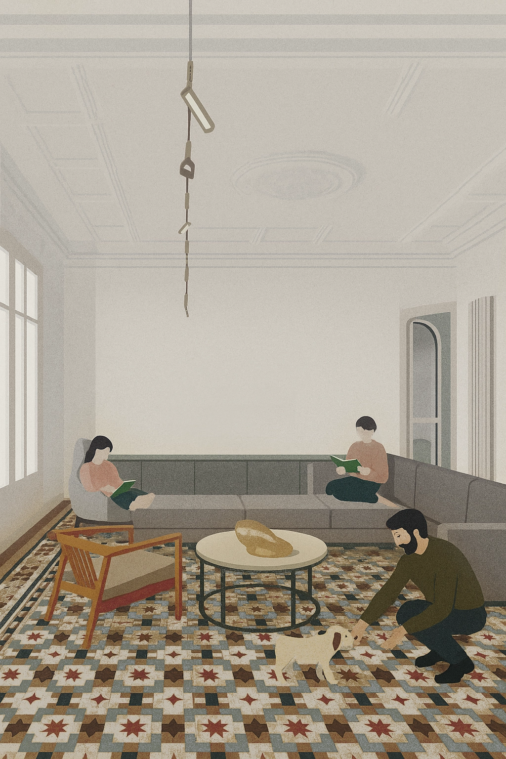 When closed, the rooms preserve intimacy; when open, they dissolve into one another, appearing not as separate enclosures but as adjacent breaths of the same space. This fluid geometry allows the family to live, work, and gather without interruption — the architecture adapting to their shifting rhythms.