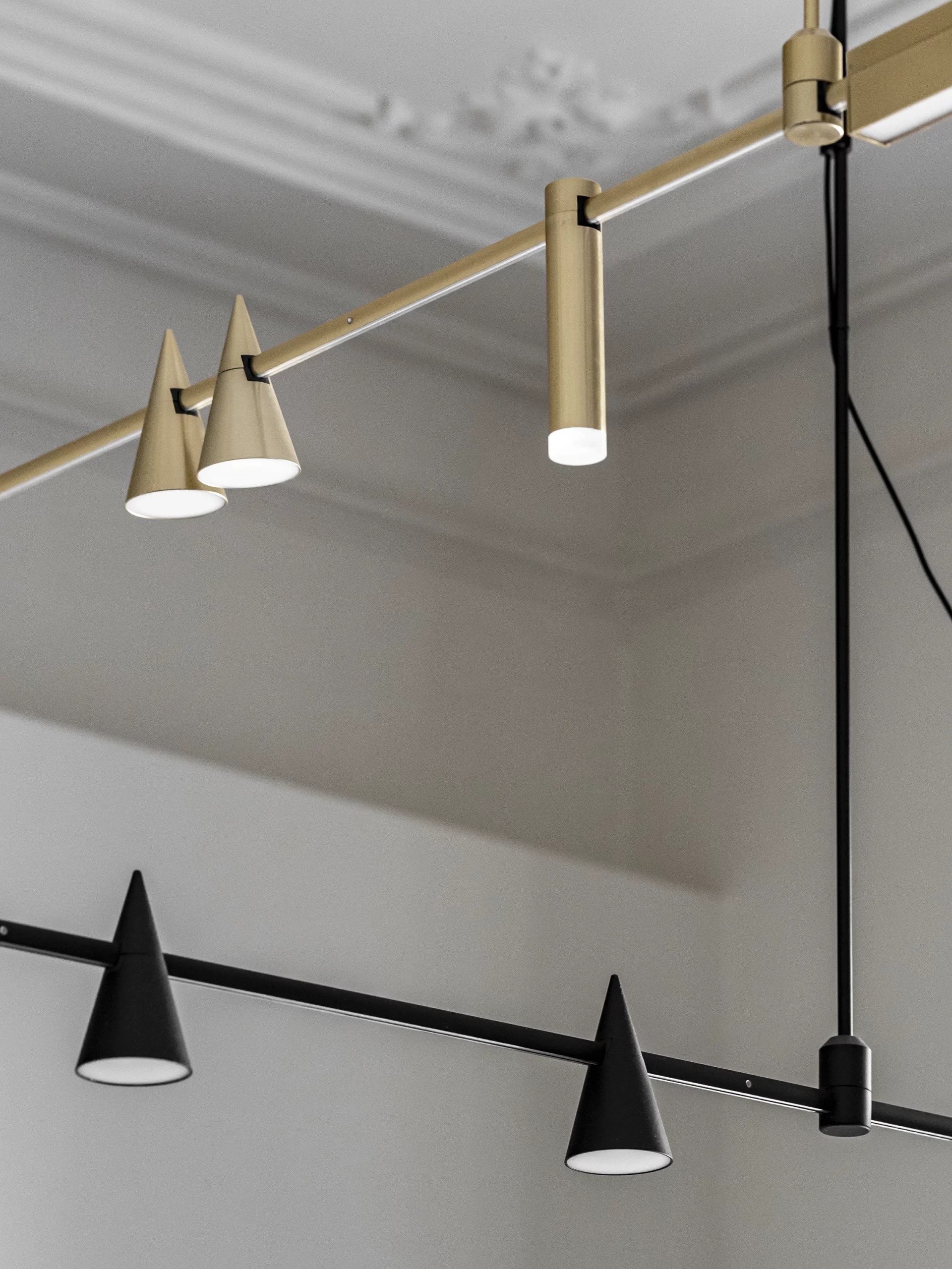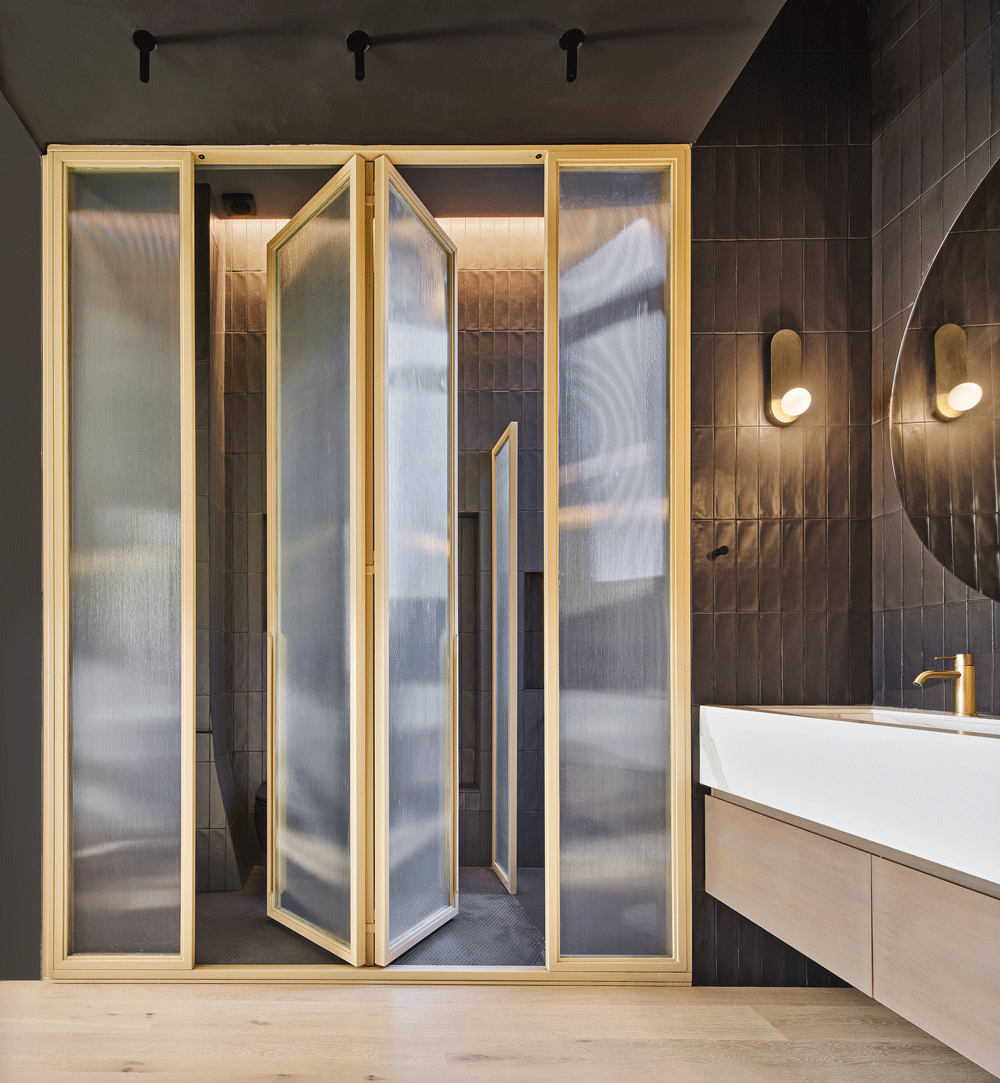 At one end, a children’s suite of steel and warm wood panels invites play and independence. At the other, the master suite unfolds through a gradient of darkness and light — from a sleek wardrobe and softly lit bathroom to a sun-filled bedroom and winter gallery.