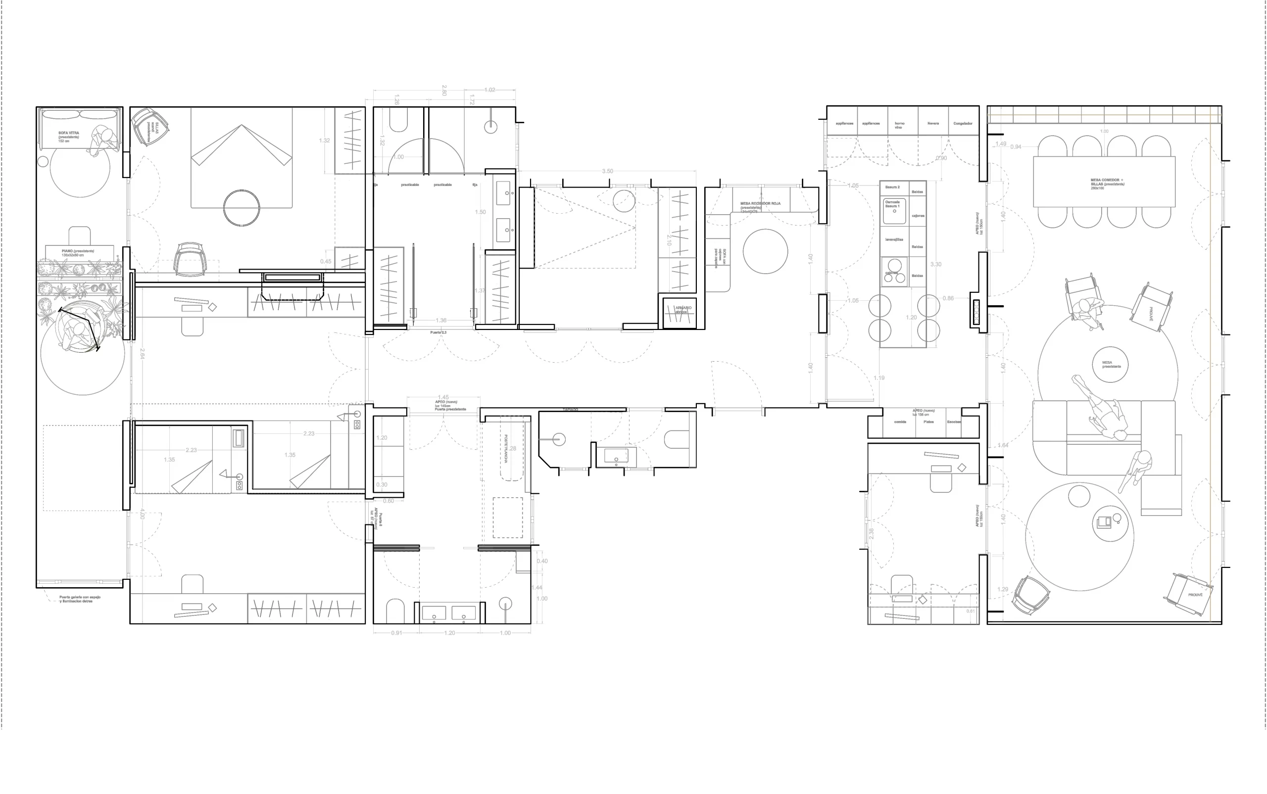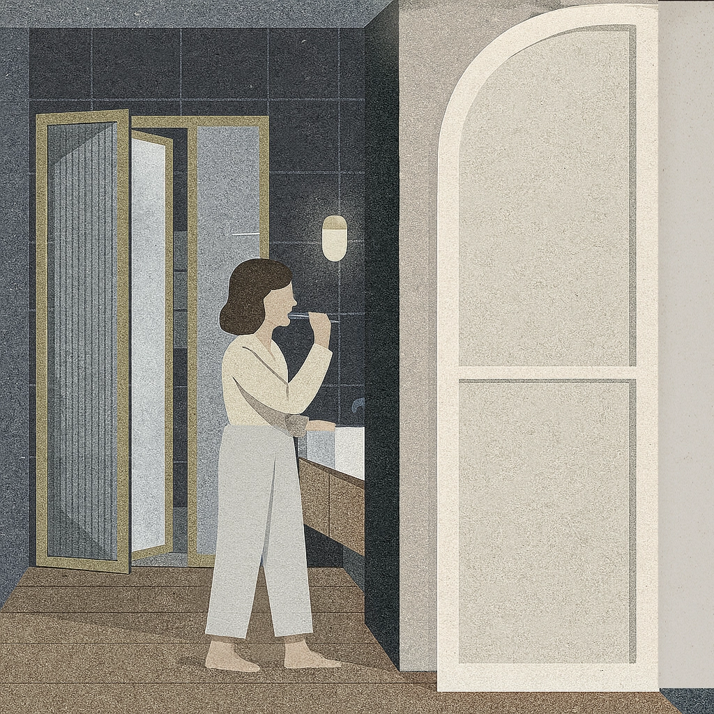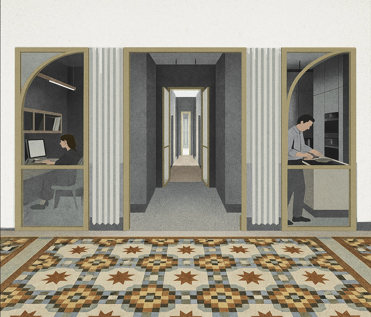 The project reflects a new domestic paradigm born after the pandemic — where work, study, cooking, and rest often unfold within the same walls. The family sought spaces that could coexist in proximity yet retain individuality; places where life could flow together and apart. Cometa Architects turned the door into the silent protagonist of this choreography — a system of double doors that opens and closes throughout the day, creating a dialogue between togetherness and solitude.