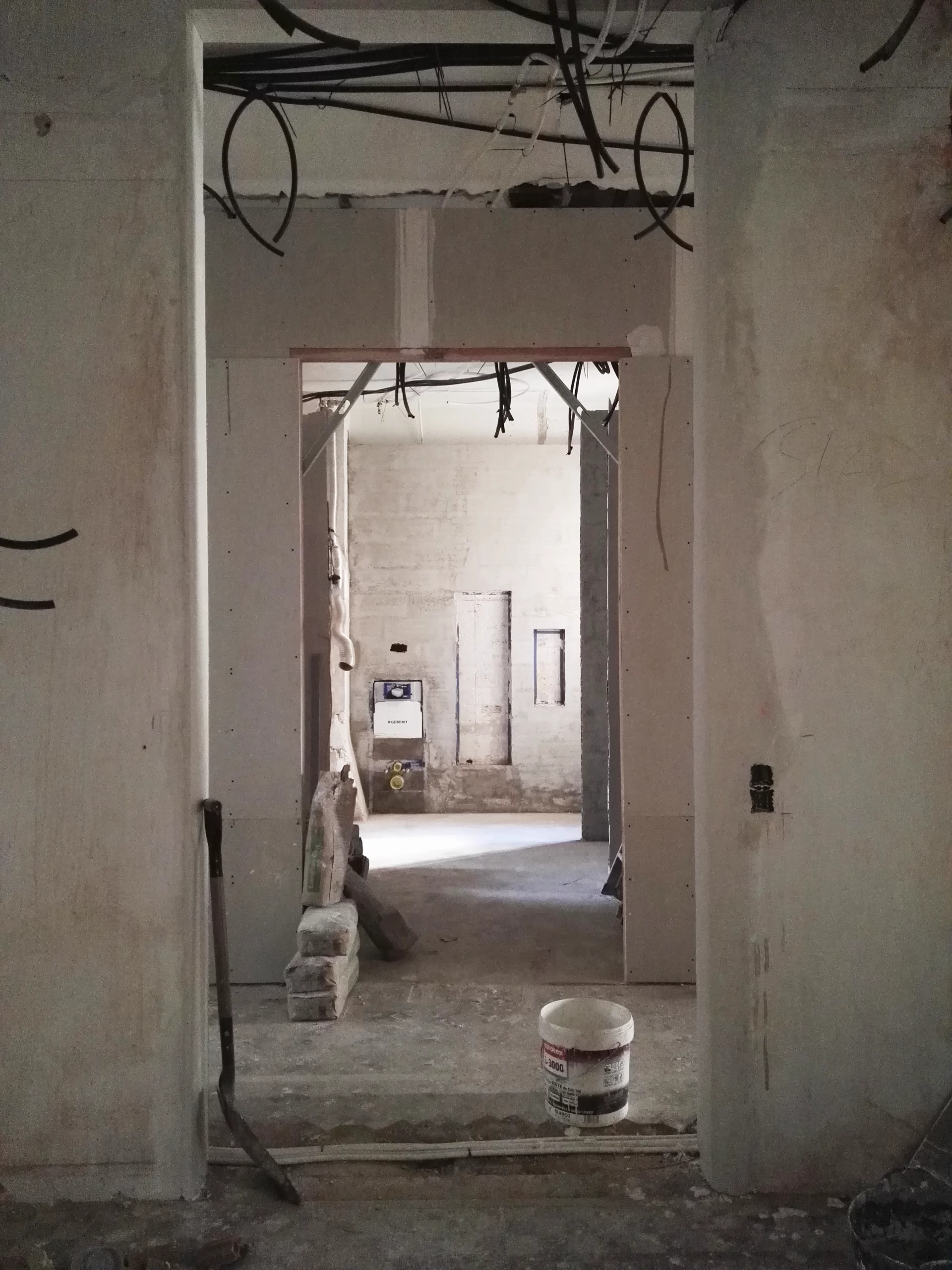 The former labyrinth of corridors and small rooms was cleared and restructured through large structural openings reinforced with steel. Natural light now reaches the deepest corners, while moments of deliberate shadow introduce calm and contrast.