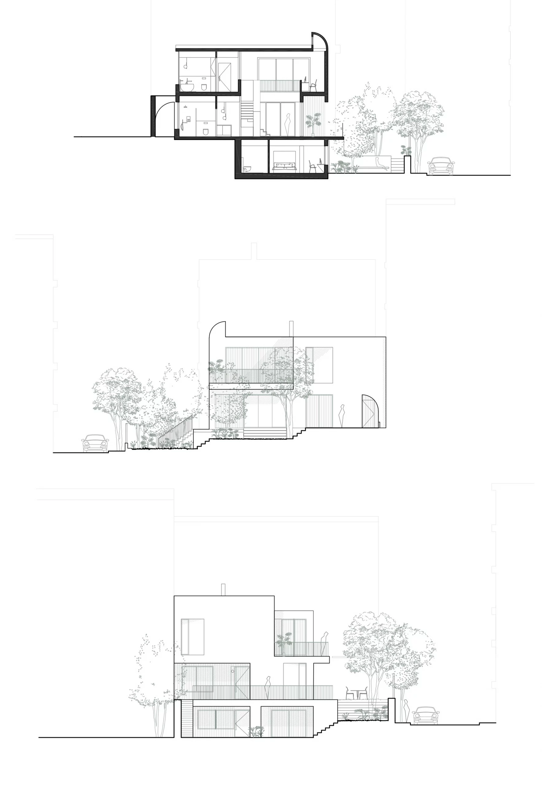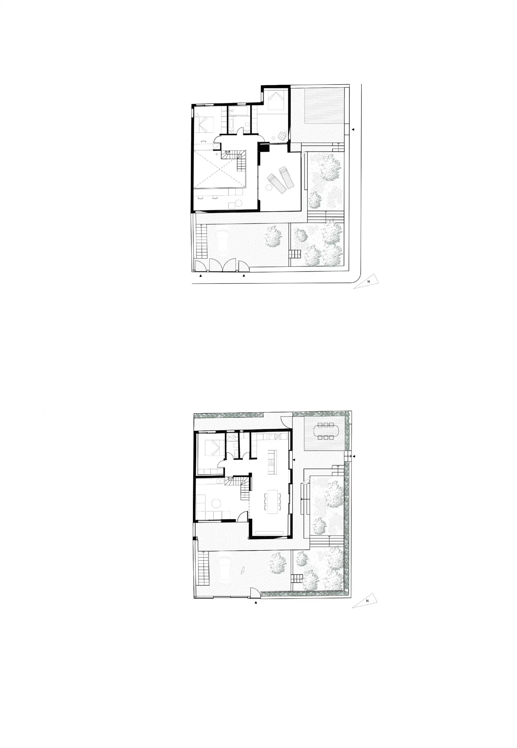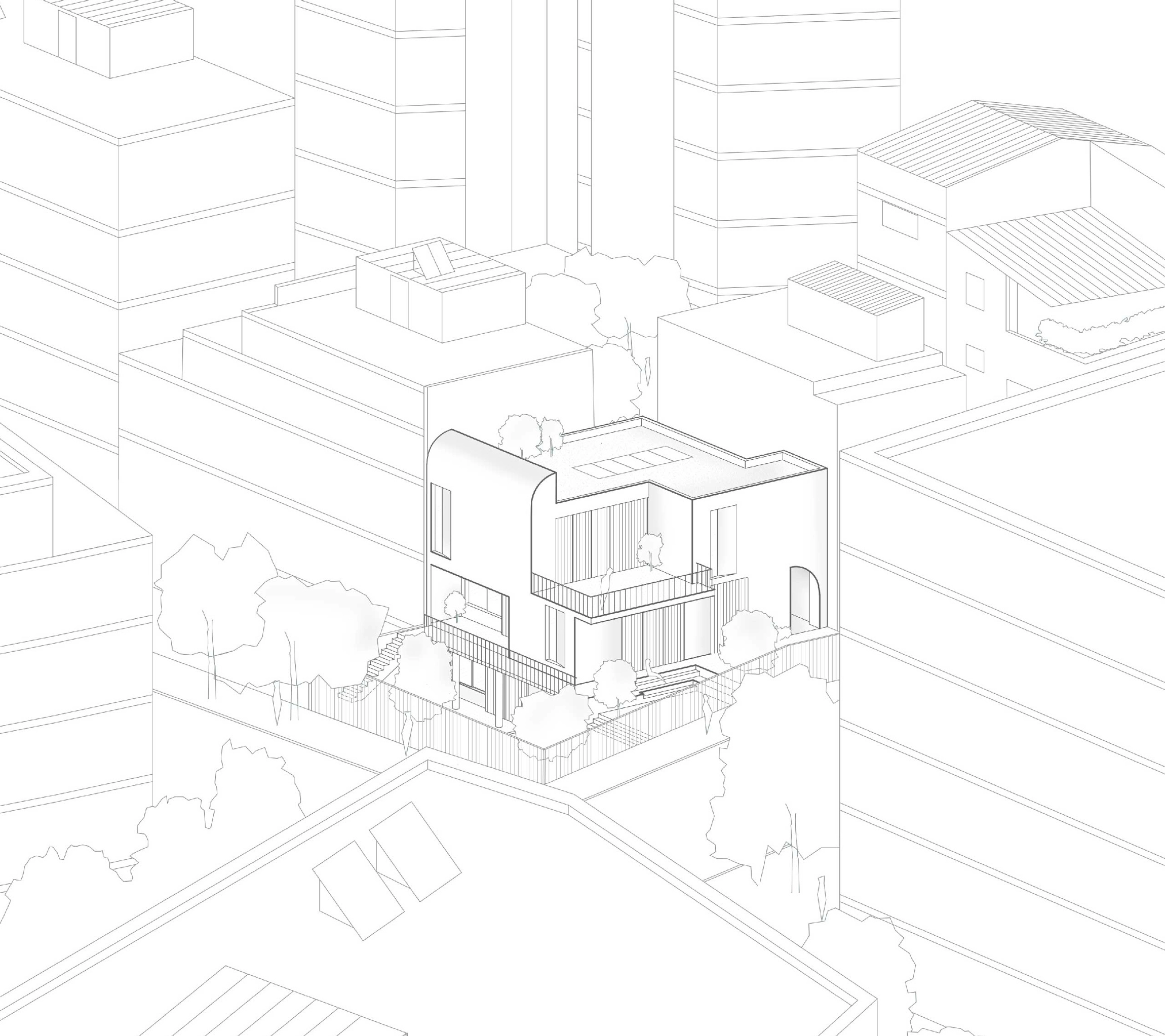 Surrounded by taller buildings with intrusive balconies, the house was redesigned as an opaque, volumetric form—a modern fortress that defends its interior life from external pressures. Rather than compete with vertical development, the design preserves a low-profile silhouette, reducing the visual and environmental impact of new construction in the dense urban fabric. By retaining the original concrete foundations and structure, the project embraces sustainability through adaptive reuse. Select portions of the slabs were removed to create double-height spaces, while a lightweight steel addition on top respects the region’s seismic demands.