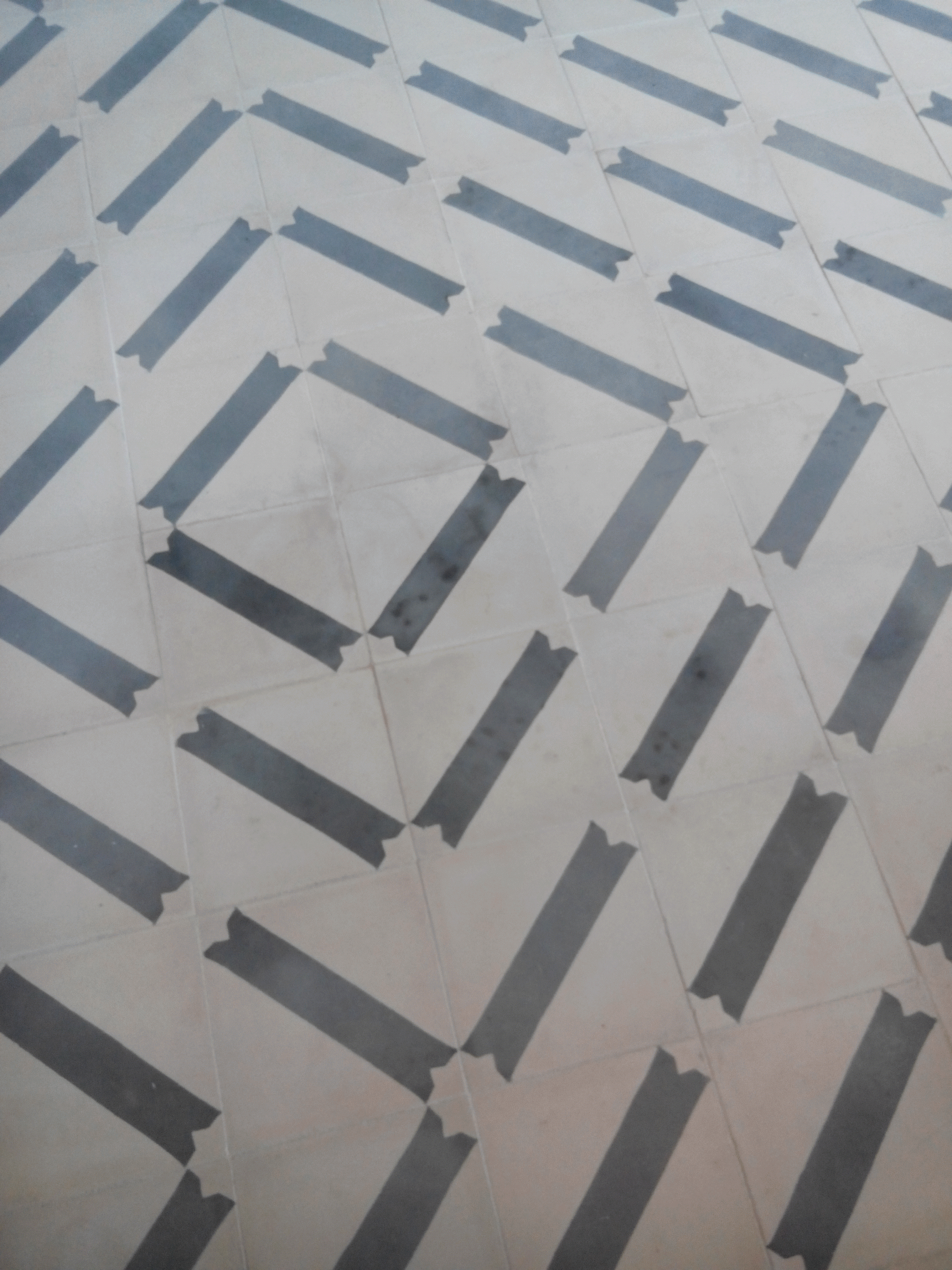 A bespoke floor pattern made of handcrafted hydraulic tiles replaces the damaged original, forming a contemporary “tile carpet” that visually connects the different zones of the apartment. Strategically placed mirrors — on the kitchen island and within the Light Box — expand the perception of depth and multiply the presence of natural light.